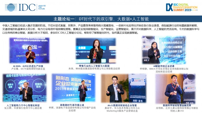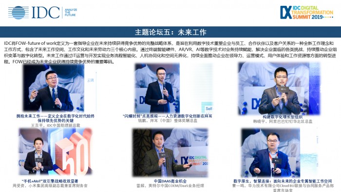 IDC中国区总裁霍锦洁女士在此次年度盛典主论坛的主题演讲中表示:数字经济的发展已经进入快车道,全球数字经济2018-2022年的复合增长率达到了36%。到2022年,全球数字化GDP将达到46万亿美元,占经济总量的46%。数字化转型是数字经济的核心驱动力,从2019到2021年,数字化转型方面的直接投资将达到5. 5万亿美元。数字化转型2.0时代来临,目标是从未来文化、未来客户、未来智能、未来运营、未来工作五个维度打造未来企业。无处不在在的AI、每个人都是开发者、云与边缘的融合、重新定义信任、解决方案自动化而即时,他们构成了未来企业实现客户价值的5大利器。