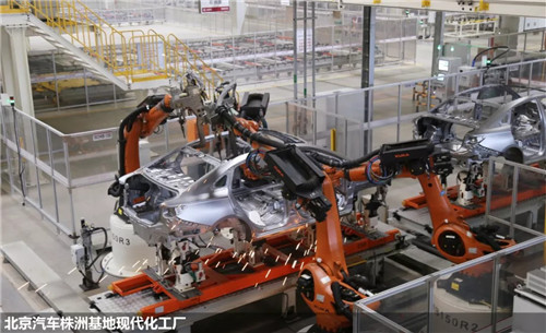 在生产手段方面,北京汽车株洲基地已投入630余台机器人,运用博途等全集成自动化软件,自动化率达80%,可实现4平台6车型柔性共线生产,并且如果有新车型,还可以实现更多平台更多车型的共线生产。是我国中部地区机器人应用规模最大、自动化率最高的基地之一。