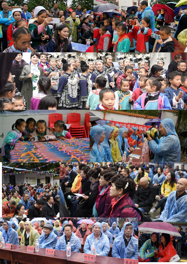 当天的活动选定的时间不巧,从早上8点一直到中午11点,大雨一直没停,加上已是初冬,天气寒冷,板告小学院子内,所有人都打着伞或穿着一次性雨衣淋在雨中。但尽管如此,活动依然紧张而热烈。