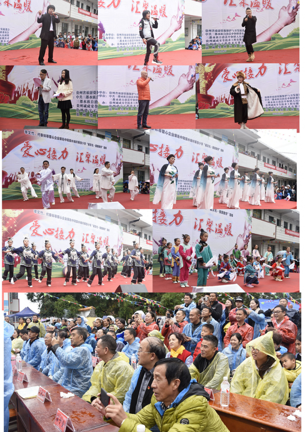 活动邀请了影、视、歌三栖明星王飞鸿,贵州歌王野马,中国苗族歌王潘兴周、中国谐剧表演第一人卜小贵、知名主持人申半城、知名京剧表演艺术家陈建良等现场助阵,为当地村民及学校师生送去一台丰富的文艺演出。这也是被媒体誉为“贵州爱心铁三角”的贵州省旅游资源保护与开发促进会创会会长、省直机关工委原书记何子明,贵州省旅游资源保护与开发促进会副会长、贵州建宇工程技术有限公司董事长代春林,贵州日报记者、北京黔菜协会副秘书长沈仕卫共同组织举办的第十次爱心活动。