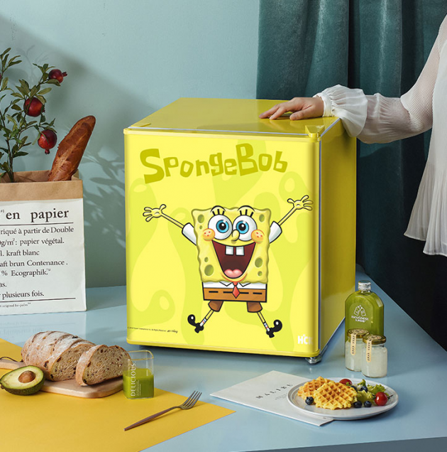 HCK 携手《海绵宝宝》推出了一款特别的海绵宝宝卡通授权产品——BC-46DCA。该款冰箱机身采用海绵宝宝的经典黄色设计,并将经典的 “海绵宝宝”卡通形象作为面板形象,看它那欢呼雀跃的神情好像有种迫不及待与你相遇的感觉。