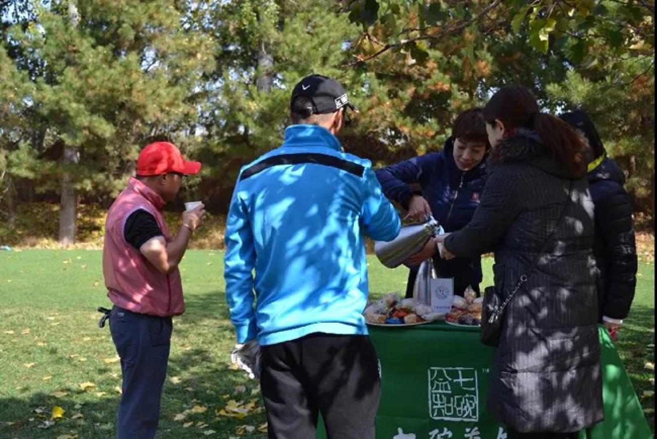 选手们在球场上英姿飒爽,挥杆击球,优雅极了,天下益知团队分别在场下5号洞发球台和补给站设下“加油站”,为经过的选手们提供茶艺师泡好的云南老茶头普洱熟茶,暖胃更暖心;食品补给,保障选手们体力充沛,打好球。