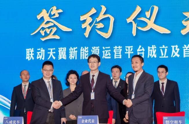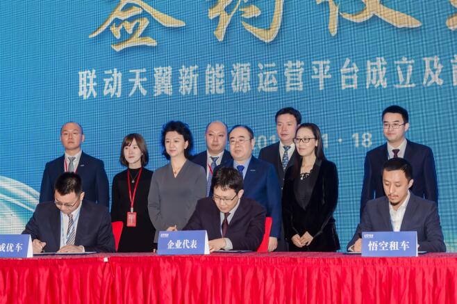 1 1 月1 8 日,联动天翼与悟空租车举行了八戒优车公司成立签约仪式,旨在通过车电分离技术、换电站技术,打造新能源汽车的资产运营平台。
