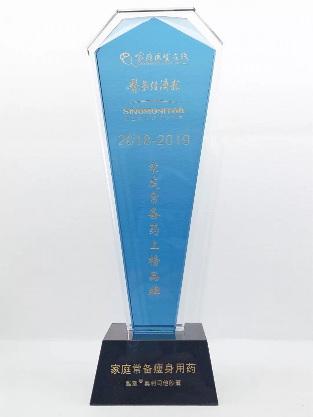 经过为期一个月专业视角的评估和消费者的自主投票,重庆植恩药业有限公司旗下的OTC产品雅塑奥利司他胶囊成功入选2019年度“中国家庭常备瘦身用药榜单”。