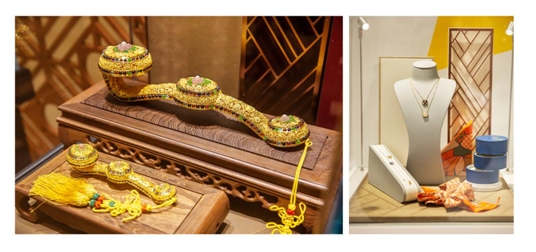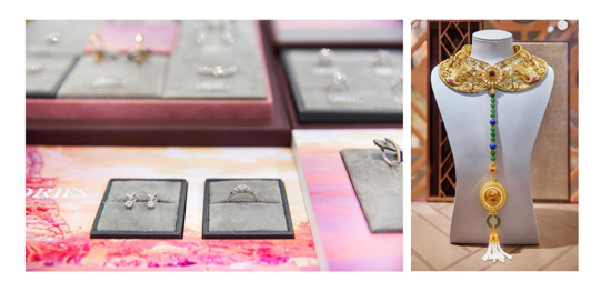 本次展览集结了JEWELRIA周大福荟馆上百件珠宝精品,东方宫廷美学展厅荟聚了与紫禁城艺术珍宝一脉相承的故宫系列珠宝,每一件臻品都凝聚着皇家精湛工艺与文化精髓,时刻绽放东方文化的古典之韵。