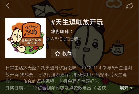 悠冉咖啡挑战赛话题为“天生逗咖放开玩”,在抖音上迅速蔓延: