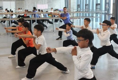 在回答完大家的问题之后,Sami教练现场教学,传授了赫德学生一套基础的南拳动作。孩子们专注地聆听并跟随着教练打出动作,一张张小脸上写满了认真。