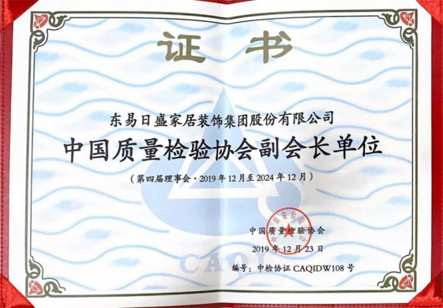 东易日盛作为中国质量检验协会第四届理事会副会长单位,也将发挥行业带头作用,建立消费者与企业、行业、政府之间的沟通和桥梁,以高质量的产品服务消费者,回馈社会。