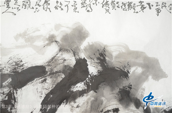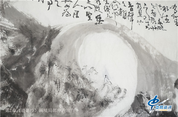 近日,记者在位于北京西二环的仲泊游工作室看到了近200米长的大型画作八十一幅老子《道德经》画境系列作品,场面极其震撼。据了解,画家仲泊游自八十年代就研读老子《道德经》并把此书当做从事艺术创作的“大画论”座右铭,经过数年探寻、多年构思,终于把《道德经》以画作形式呈现出来。这些《道德经》画作,画幅宏大,水墨淋漓,宇宙山水,神秘之境,体现了远古的哲人对天地宏宇的探寻之境;阐述了画家仲泊游对经典的解读,以及用画笔诠释了老子的经典意境。