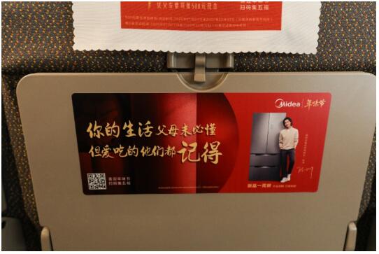 在京沪铁路沿线兢兢业业奋斗了全年的游子,纷纷踏上复兴号,开启返乡旅程。而这最先进的列车、最顶尖的行进速度也无法宽慰他们热切复杂的返乡情绪。美的冰箱以深度的洞察和走心的话语,陪伴每一位游子走过这段“度日如年”的返乡旅程,为乘客提前送去归家的幸福感。在京沪线上,目之所至都是大红色的美的冰箱年味节广告,乘客从上车的那一刻起,就能感受到浓浓的过年气氛。