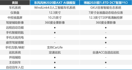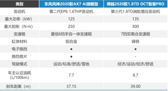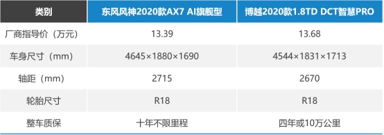 那么,同样12万+,同为国产紧凑型SUV,差距有多大?我们不妨选取东风风神2020款AX7 AI旗舰型(简称2020款AX7)同博越2020款1.8TD DCT智慧PRO(简称博越PRO)进行比较,看看东风风神2020款AX7同有“中国最美SUV”之称的吉利博越的差距在哪里?