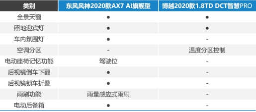 在舒适性方面,博越PRO拥有温度分区控制功能,比肩豪华品牌,给予消费者更多驾乘享受。而2020款AX7则拥有驾驶席电动座椅记忆、后视镜记忆、后视镜倒车自动下翻、后视镜锁车自动折叠及雨量感应式雨刷,可以说很贴心了,而博越PRO锁车后还得手动折叠后视镜,可想而知车主的心理阴影有多大。