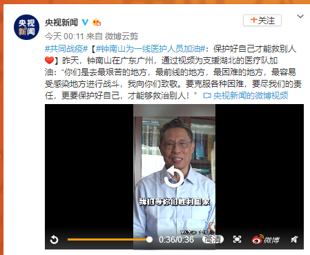 保护好自己才能救别人,昨天,钟南山在广东广州,通过视频为支援湖北的医疗队加油:“你们是去最艰苦的地方,最前线的地方,最困难的地方,最容易受感染地方进行战斗,我向你们致敬。要克服各种困难,要尽我们的责任,更要保护好自己,才能够救治别人!”