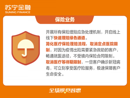 疫情危机关头,是保险业履行天职的关键时刻。苏宁保险将继续密切关注疫情进展,全力以赴、科学有效地做好疫情防控及保险保障服务等工作,为打赢疫情防控阻击战贡献力量。