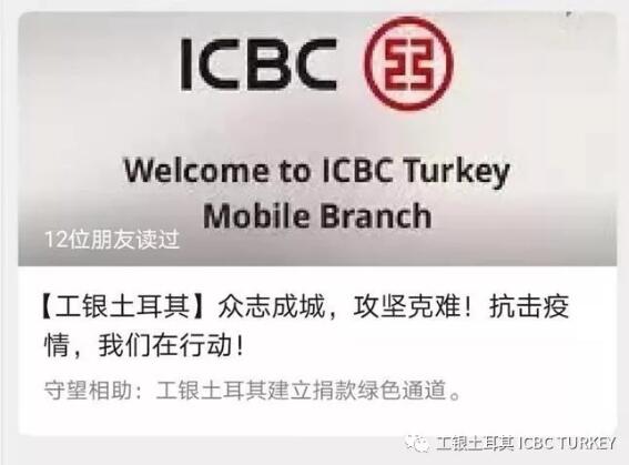 服务不“隔离”,金融有温度。为保障疫情防控期间金融服务的快速响应,工银土耳其制定出台了金融专项服务方案、绿色捐款通道等多项措施,对向我国境内捐款或与本次疫情有关的医疗救治汇款免除汇款手续费,客户可通过网点柜面、网上银行、手机银行等多种渠道向国内汇款,充分强化疫情防控金融支持,有效保障金融服务顺利通畅。