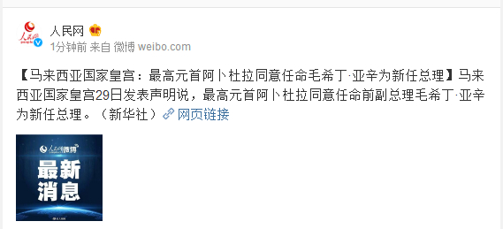 马来西亚国家皇宫29日发表声明说,最高元首阿卜杜拉同意任命前副总理毛希丁·亚辛为新任总理。(新华社)