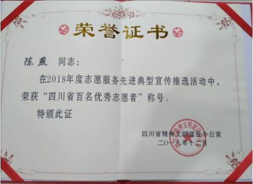 据了解,“绵州燕姐”坚持传承祖训挚爱从善公益慈善事业已有35年之久。多年来,她的爱心足迹遍布全国各地,她的感人事迹被多家主流媒体关注报道。先后被四川省、绵阳市等政府部门授予“最美家乡人”、四川省“最美志愿者”,2018年被四川省文明办评为“四川省百名优秀志愿者”,2019年荣获四川省政府“四川慈善奖”。