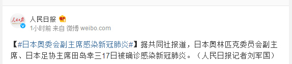 据共同社报道,日本奥林匹克委员会副主席、日本足协主席田岛幸三17日被确诊感染新冠肺炎。(人民日报记者刘军国)