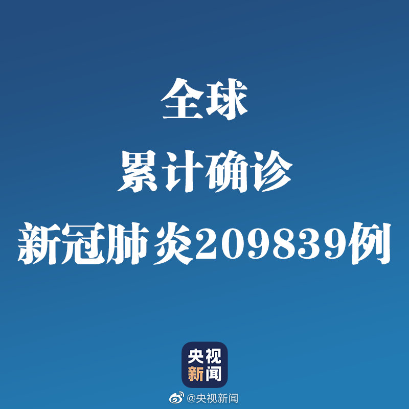 据世卫组织最新一期新冠肺炎每日疫情报告,截至欧洲中部时间19日0时(北京时间7时),全球确诊新冠肺炎209839例(新增16556例),死亡8778例(新增828例)。据世卫实时监控数据显示,目前已有168个国家地区出现新冠肺炎病例,#中国以外新冠肺炎确诊超12万例#。(总台记者朱赫)