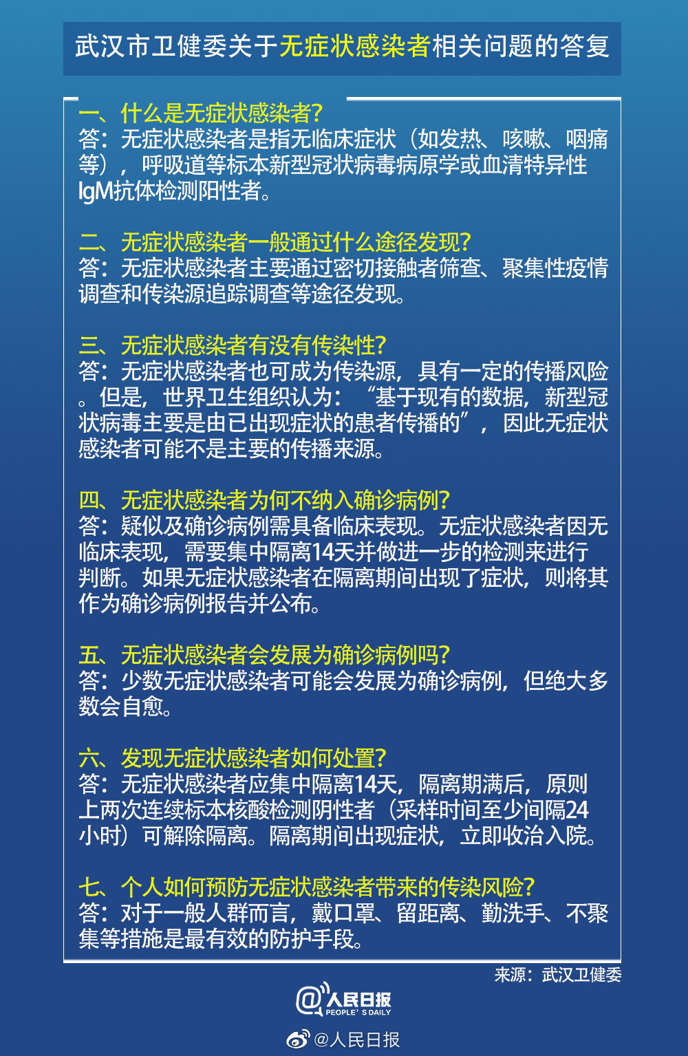 无症状感染者到底有没有传染性?为何不纳入确诊病例?#一般人群如何预防无症状感染者传播风险#?武汉市卫健委答复相关问题。