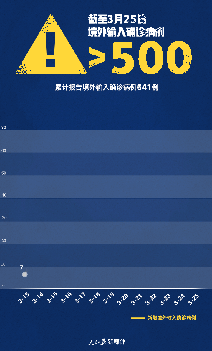 截至3月25日24时,累计报告境外输入确诊病例541例,防控不松劲!