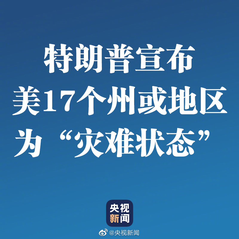 据美国有线电视新闻网报道,截至美国时间28日,美国总统特朗普已经批准17个州或地区宣布为应对新冠肺炎疫情“灾难状态”。包括纽约、华盛顿、加利福尼亚、新泽西、马萨诸塞、密歇根、密苏里、马里兰、伊利诺伊等州,及关岛、波多黎各两个地区。(央视记者刘旭)