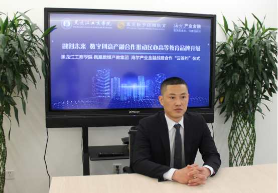 会上,海尔产业金融与凤凰数媒产教集团共同签署了产教融合战略合作协议,双方计划在未来十年内,优选50所民办高校,携手共建“梧桐数字创意学院”。黑龙江工商学院通过在线云签约,成为专项资金计划首家战略合作伙伴。