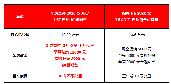 今天要介绍的两款实力派车型都是自主品牌出身,同处竞争激烈的12-13万的价格区间,一个是“国民神车”哈弗H6,另一个是“硬核新秀”2020款AX7。谁的性价比更高?谁的产品力更强?我们就以2020款哈弗H6自动铂金超豪版和风神2020款AX7 AI旗舰型为例,通过一场强手PK,看看谁才是你的真香座驾。