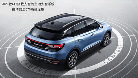 此外,2020款AX7AI旗舰型在车辆主动安全方面表现同样可圈可点。该车以67%的高强钢及近40%超高强钢打造出强悍的车身骨架,比哈弗H6铂金超豪版的65%高强度钢更坚实;再加上车尾处后超高强度钢防撞梁(带吸能盒设计),能够为用户带来更为安心的守护。主被动安全紧密结合,2020款AX7 AI旗舰型将消费者的行车安全落实到每一处细节。