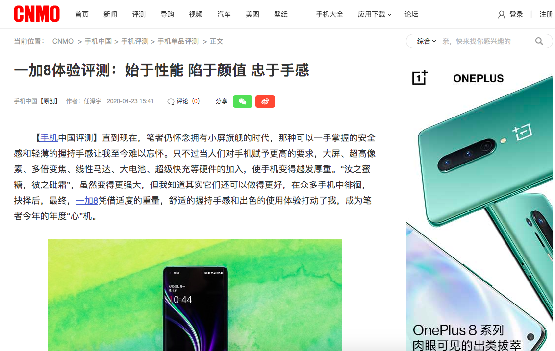 除了获得海外媒体的广泛好评外,一加 8 还受到了众多国内科技媒体的高度评价。