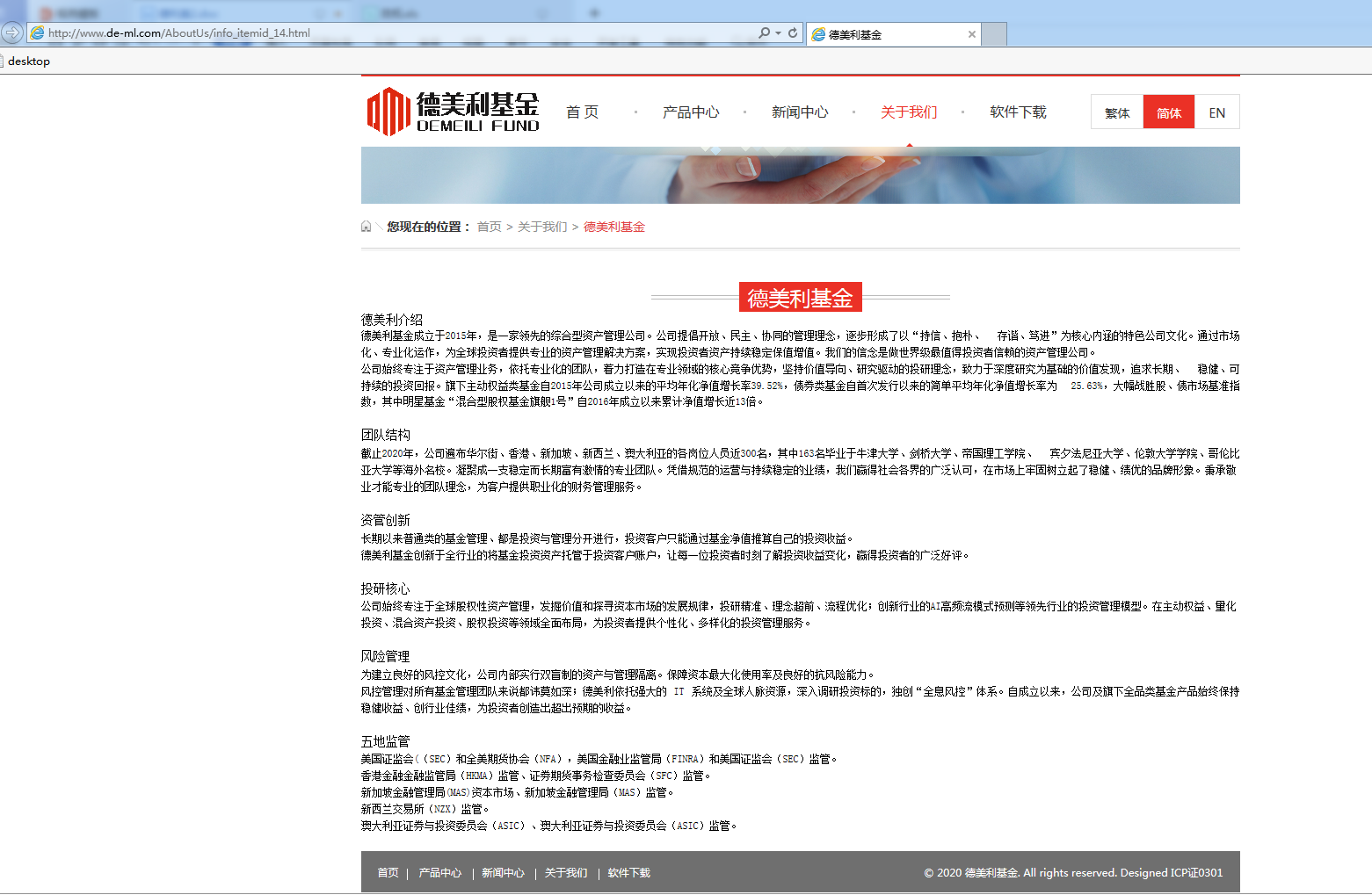 德美利基金是一家领先的综合型资产管理公司。公司提倡开放、民主、协同的管理理念,逐步形成了以“持信、抱朴、存谐、笃进”为核心内涵的特色公司文化。通过市场化、专业化运作,为全球投资者提供专业的资产管理解决方案,实现投资者资产持续稳定保值增值。我们的信念是做世界级最值得投资者信赖的资产管理公司。