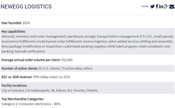 近日,在北美地区著名电子商务研究机构Multichannel Merchant公布的顶级第三方物流(3PL)供应商名单中,新蛋物流连同DHL,UPS等其他数十家物流供应商一起荣誉进榜,这是全球用户对新蛋物流服务能力给予的极大认同与肯定,同时也是新蛋全球发展20年的核心优势之一。