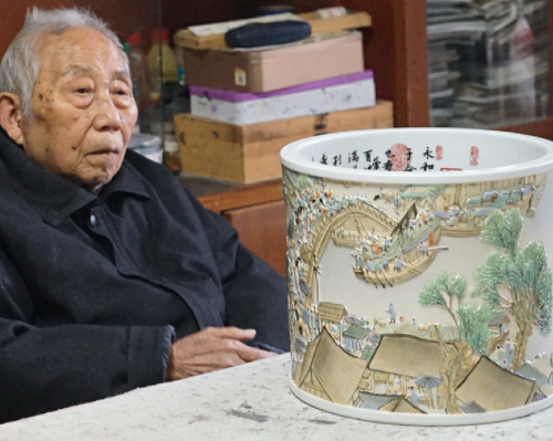 公元前1106年,北宋翰林书画院画家张择端创作了千古传世名画《清明上河图》,这件作品展现了12世纪我国都市各阶层人物的生活状况和社会风貌,艺术手法处理上具有高度的成就,真实反映了当时社会的人文生活的方方面面,具有极其重要的历史文献价值。国宝级名画被后世临摹、演绎的不胜枚举,然而,在传承上有所创新,并以新的媒介形式创作的极少。就在公元2020年,紫禁城600周年之际,一位九十八岁的国家级工艺美术大师不负期许,用半年时间,打造了一款史无前例的清明上河图宫廷《福筒》,他就是被誉为“中国瓷坛泰斗”王锡良。千年张择端,百年王锡良,是什么让跨越了千年的两位名家有了如此微妙的缘分?其实就是这件传世名画《清明上河图》的魅力和艺术价值,在引领这位百岁老人矢志不渝地为当代陶瓷界留下重量级的宝贵遗产。