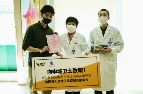 4月23日上午,威尔仕健身与上海申花莫雷诺先生联合发起“全民抗疫健身公益活动”,为抗疫卫士所捐赠的首批200张健身季卡并且正式交付到了中山医院。截止到目前为止,上海绿地申花和威尔仕健身预计为抗疫卫士捐赠1000张健身季卡。