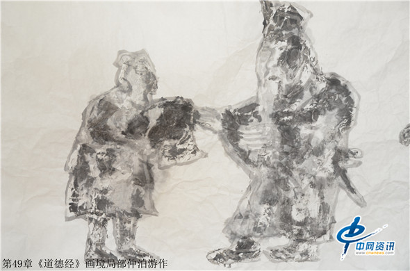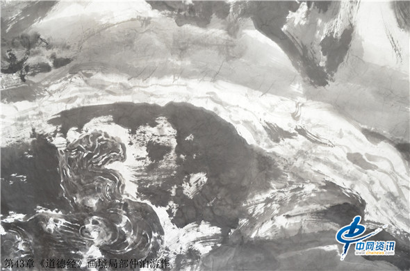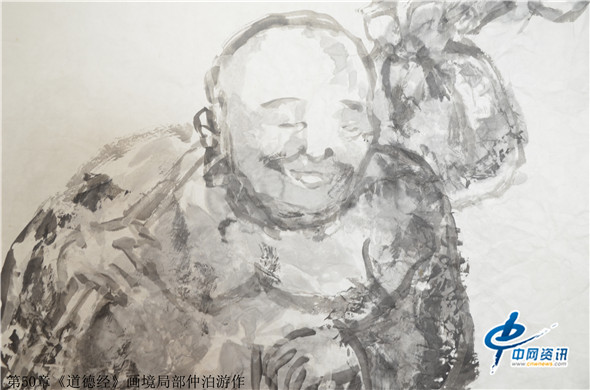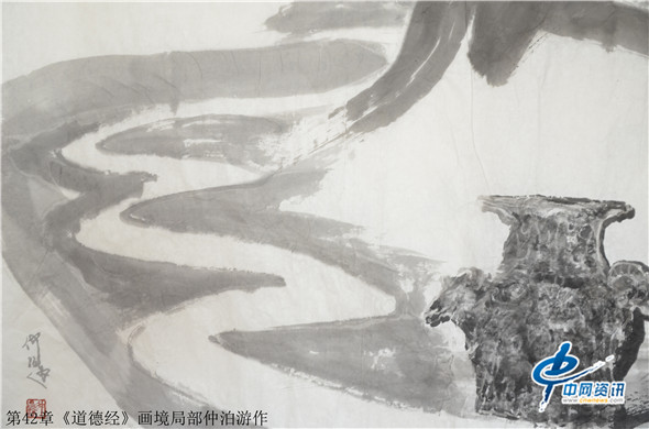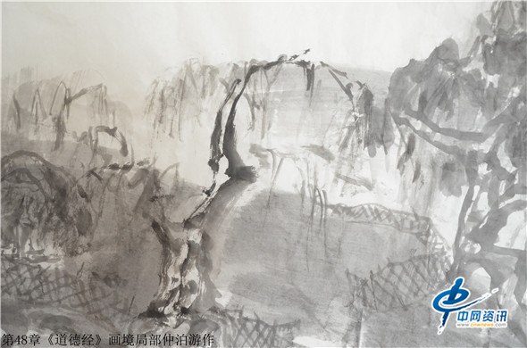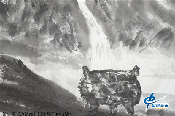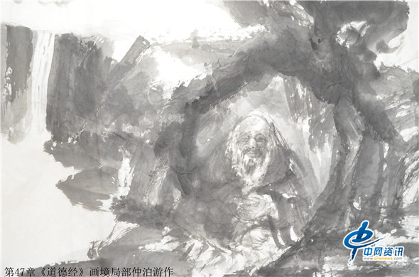 据了解,仲泊游自八十年代就研读老子《道德经》并把此书当做从事艺术创作的“大画论”座右铭,经过数年探寻、多年构思,终于把《道德经》以画作形式呈现出来,这批《道德经》画境系列作品共八十一幅,近200米长,画幅宏大,水墨淋漓,宇宙山水,神秘之境;体现了远古的哲人对天地宏宇的探寻之境。阐述了画家对经典的解读,以及用画笔诠释了老子的经典意境。