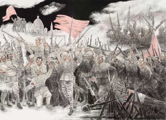 天津画院院长范扬巨幅作品《解放天津》局部画面