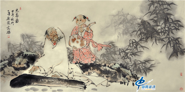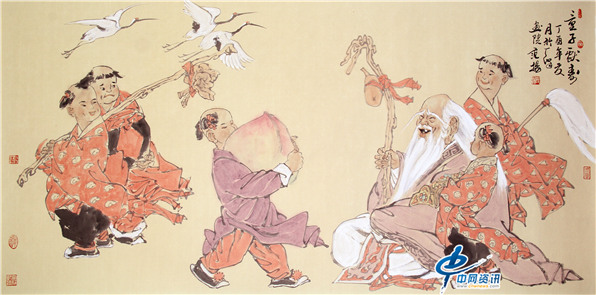 童子献寿 136x68cm 创作年代 2017年(作者:范扬)