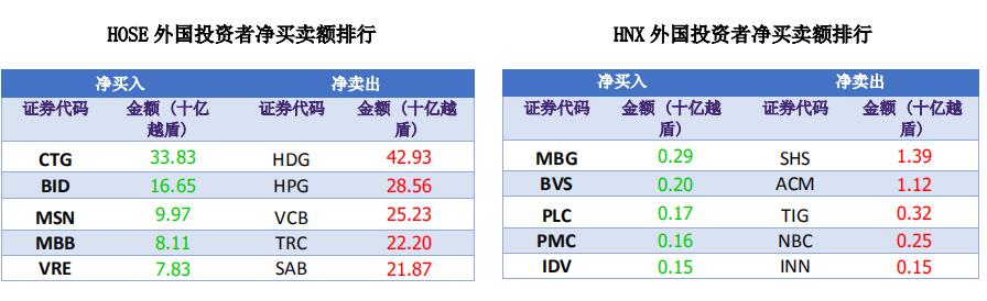 尽管市场上涨但外资仍持续净卖出。两市净卖出总额约1600亿越南盾。其中,卖盘集中于HDG(-413亿越南盾),HPG(-286亿越南盾),VCB(-252亿越南盾),TRC(-223亿越南盾)和SAB(-217亿越南盾)...
