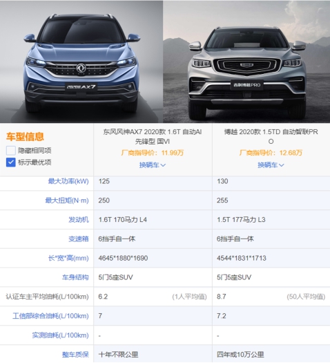 作为自主品牌老牌选手的博越PRO也在动力方面不遑多让。从动力参数上来说,虽然博越PRO搭载的1.5T发动机是自主研发的,从动力的各项数值来看,这款1.5T发动机的爆发力还是不错的。不过从使用成本来看,东风风神AX7以11.99万元的入门价格,就能让消费者享受到具备合资血统的动力组合,还自带十年不限里程质保;而东风风神AX7也在工况油耗方面有所领先,尤其从用户的反馈来看,东风风神AX7的动力也更为高效经济,这就是领先技术所带来的“福利”。