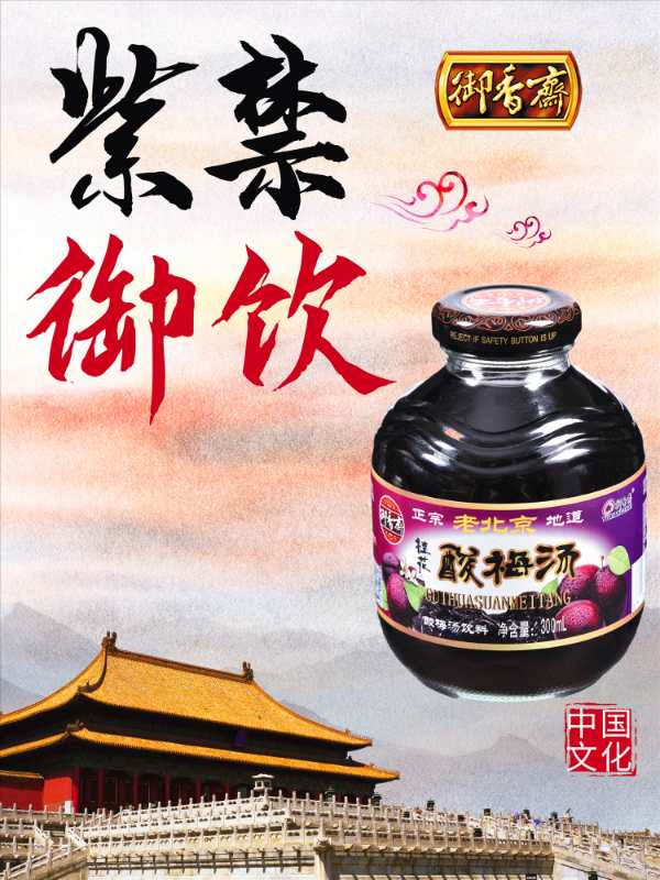 而真正的御香斋酸梅汤其实并不在和珅手里,据传当年御膳坊掌厨原本就是乾隆爷外出私访奇遇请进宫侍奉的民间神医,后感觉到宫廷气氛不稳,恐将要发生巨变遂向乾隆爷告老还乡归隐山林,御香斋酸梅汤也就成了其家族的传家秘方,其后人依照秘方所记载几经尝试终于再现当年皇家御饮的真谛,御香斋酸梅汤这才又于神州大地广为流传。物换星移,几多沧桑,现如今的御香斋酸梅汤仍然是传统的味道,传统的包装,玻璃瓶装,最大程度的保留了御香斋酸梅汤独特的口感,也方便人们携带和饮用,成为了越来越多现代人喜爱的中华养生饮品!