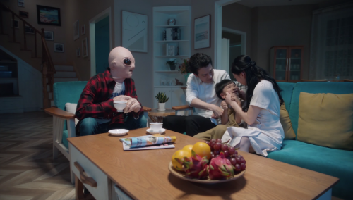 我们大多数人都在为“每月的KPI,要不要结婚生子,996还是007……”这些问题而烦恼。大家只顾着奔跑,好像谁不跑就会被远远地落下。蒙娜丽莎这一次没有选择温情路线,也没有打鸡血式的矫情,反而把着落点放在了日常生活。短片以快节奏的镜头语言和贯穿全片的“外星人晕倒”伏笔,通过外星人介入地球人生活的设定,把“美好生活”具象化,一家人在一起,吃一顿家常饭,一起度过饭后闲暇时光……让人在观影的同时重新审视生活。