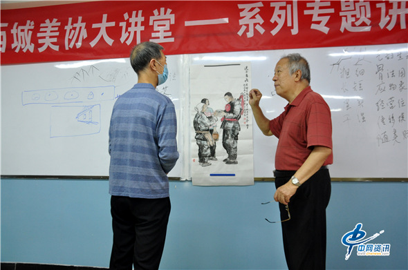 北京市西城区美协主席纪清远与学员互动并点评学员作品