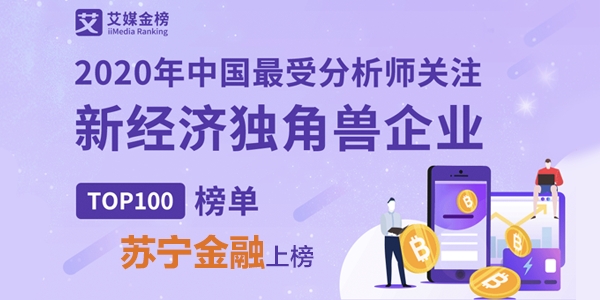 近日,全球领先的新经济行业数据挖掘和分析机构iiMedia Research(艾媒咨询)权威发布《2020年中国最受分析师关注新经济独角兽企业TOP100榜单》,苏宁金融凭借在金融科技领域的创新成果、领先优势,从数量众多的入选竞争者中脱颖而出,成功入选该榜。