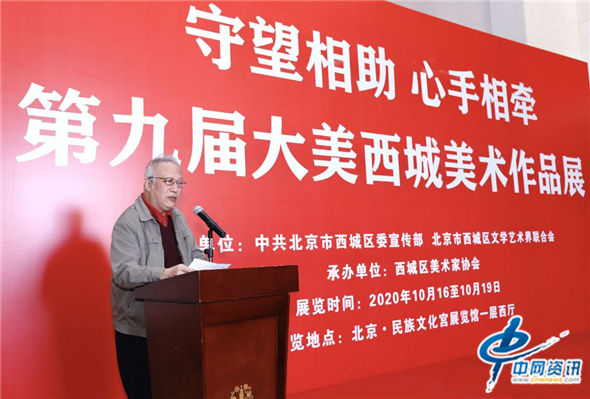 【中网资讯书画消息】庚子新春伊始,一场突如其来的新冠疫情肆虐人类和祖国大地,中国共产党始终把人民群众生命健康放在首位。在全国人民齐心协力共同奋斗,终于取得了抗疫阶段性的重大战略成果,令世人瞩目。为了讴歌赞美全国万众一心、同舟共济,共同抗击疫情的壮举和感人事迹,传递人间的大爱,弘扬中华民族的伟大精神,2020年10月16日,由中共北京市西城区委宣传部、西城区文联主办,西城区美术家协会承办的“守望相助、心手相牵——第九届大美西城美术作品展”,在北京民族文化宫展览馆隆重开幕。