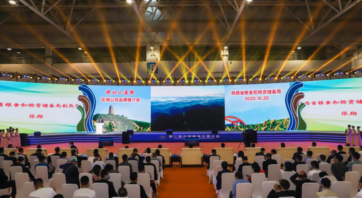 10月20日,在位于福州海峡国际会展中心的第三届中国粮食交易大会消费扶贫推介会专场上,陕北小杂粮区域公共品牌正式发布。国家粮食和物资储备局副局长贾骞、国家粮食和物资储备局粮食交易协调中心副主任罗文娟、国家粮食和物资储备局粮食交易协调中心总经济师张云、国家粮食和物资储备局规划建设司司长晁铭波、陕西省粮食和物资储备局党组书记局长杨林、陕西省粮食和物资储备局党组成员副局长张翔、陕西省粮食和物资储备局总工程师王晓霞等领导出席本次活动。