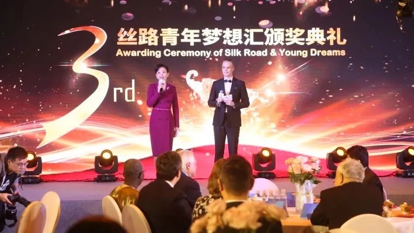 10月17日,由丝绸之路城市联盟、中国友好和平发展基金会、北京丝绸之路合作与发展促进会、中国人民大学重阳金融研究院共同主办的第三届“丝路青年梦想汇”颁奖典礼在北京举行。格鲁吉亚驻华大使Archil Kalandia阁下、贝宁驻华大使Simon Pierre Adovelande阁下、马来西亚驻华大使YM Raja Dato' Nushirwan Zainal Abidin阁下、厄瓜多尔驻华使馆领事Javier Fernando Sanchez Lopez、埃及驻华使馆参赞Dr. Omayma Ghanem、日本驻华使馆参赞伊藤直人、全国政协常委、中国美术馆馆长吴为山、中央外事办公室前副主任吕凤鼎、国务院参事樊希安、中国人民对外友好协会副会长李希奎、中国民族文化艺术基金会秘书长高广旭、中联部中国民间组织国际交流促进会副秘书长王珂、中国驻意大利、瑞士前大使董津义、中国驻葡萄牙前大使黄松甫、中央电视台前副台长洪民生、国际在线副总裁何清、北京社工委处长陈权余等百余名嘉宾,共同见证属于111名来自32个丝路沿线国家获奖选手的高光时刻。