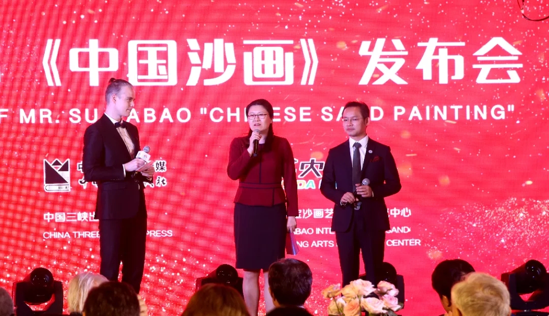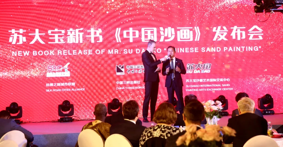 徐祖苗在在致辞中说到,作为中央企业三峡集团所属的现代文化传媒公司,近年来,中国三峡出版传媒公司围绕一带一路上的中央企业海外故事,积极开展了一系列卓有成效的跨文化传播工作。苏老师作为中国沙画创始人和当代最具影响力的青年沙画艺术家,在国际文化交流中发挥了积极作用,用沙画架起了一带一路新的友谊桥梁,是中国三峡出版社的优质作者和长期合作者。2018年,苏大宝个人散文集《沙间集》正式出版并进入当当网新书排行榜前20,双方的合作愉快而富有成效。本次出版的《中国沙画》是苏大宝老师凝聚十年艺术创作心血,精心撰写的沙画专业教材。全书全面总结了沙画艺术理论知识,通过800余幅图片和视频,系统解读了30余种沙画创作手法和具有较高艺术水准的经典作品,全面立体地展示了中国沙画艺术发展成果。期待通过这本图、文、视并茂,可读、可看、可听、可学的图书,进一步丰富完善中国沙画创作理论体系,助力中国沙画事业蓬勃发展,更好地记录传播一带一路上的感人故事和深厚友谊。