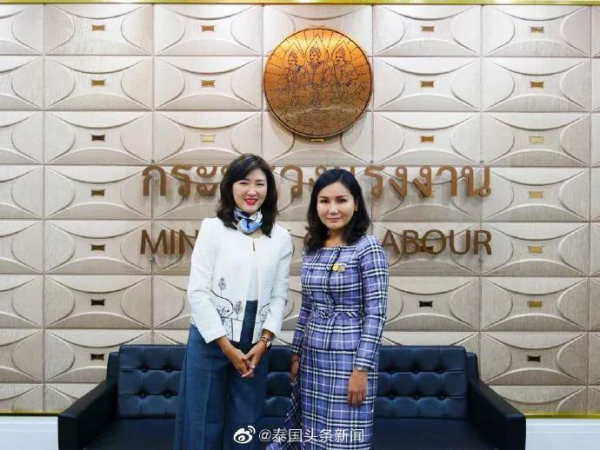 10月5日,泰国亚洲大众集团董事长郭蕊女士及泰国中信亚洲投资国际有限公司董事长兼首席执行官 章骋( 培炎 )先生前往泰国劳工部,拜会新任劳工部副部长、前总理府发言人纳勒蒙女士。