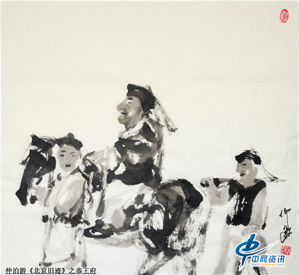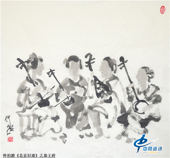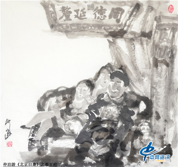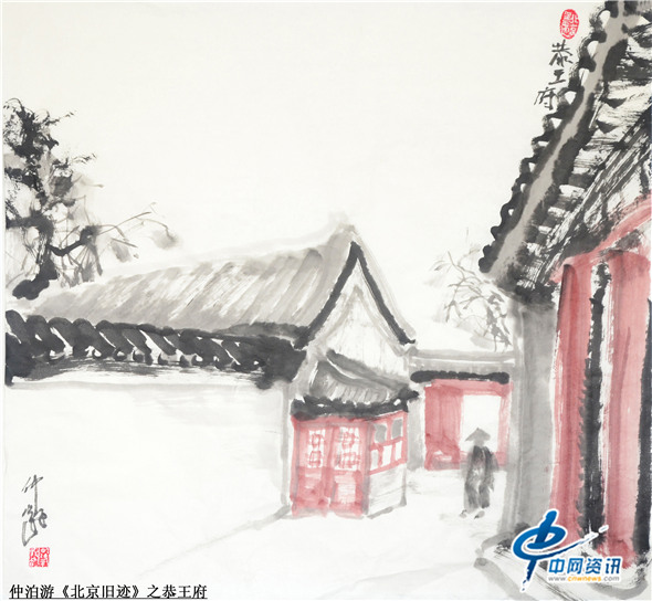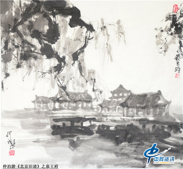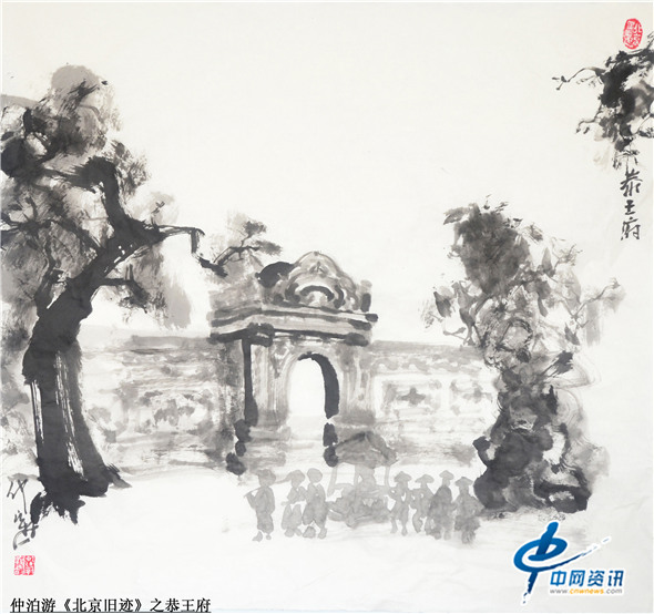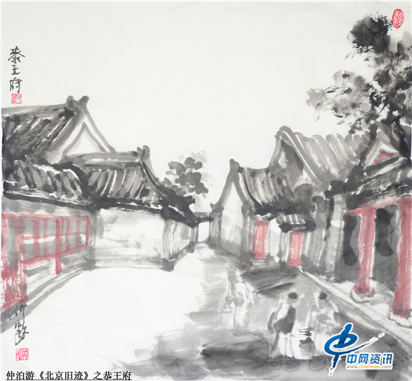 【中网资讯书画】仲泊游以水墨语言追忆北京旧迹,北京是一座有故事的都城,历史悠久,文化厚重,画家以点滴往事写意晚清民初的过往人物及老北京风景片段。去唤起人们对北京悠悠岁月的回味。