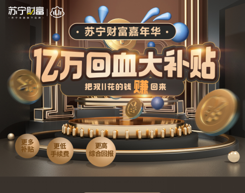 双十一,各大电商折扣不停,我们荷包的资金也消耗不少。在此期间,苏宁金融旗下苏宁财富举办财富嘉年华活动,狂撒亿万回血大补贴,通过钱包回血券、钱包回血专享产品、尊享财富特权、财富合伙人等活动,让您把双十一花的钱赚回来。